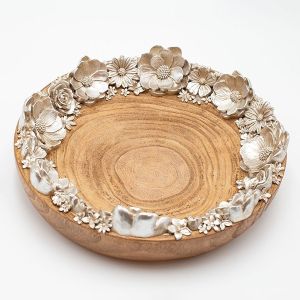 ДЕКОРАТИВНА ПОЛИРЕЗИНОВА ЧИНИЯ С ЦВЕТЯ И ЗЛАТНИ ДРЪЖКИ 38X24X9 СМ