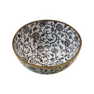 ДЕКОРАТИВНА КУПАЕ С ФЛОРАЛЕН ПРИНТ ОТ ПОЛИРЕЗИН СЪС ЗЛАТНА ДРЪЖКА 26X23X23 СМ