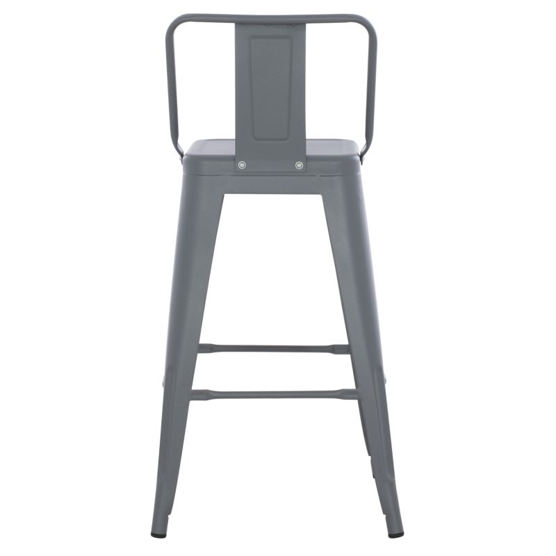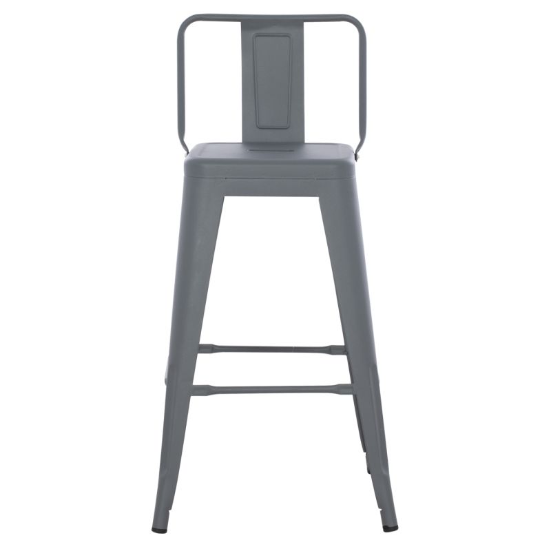 Средно висок бар стол с облегалка MELITA-PRO в квадратен дизайн, изцяло метален в СИВ цвят.