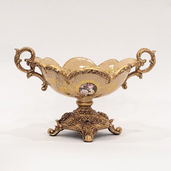 БОНБОНИЕРА ОТ ПОРЦЕЛАН - ПОЛИРЕЗИН БЕЖОВ С ЦВЕТЯ 37X22,5X23СМ