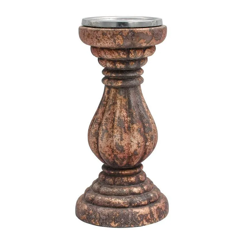 Стъклен свещник Fl2815 розов с метална повърхност 11x24см