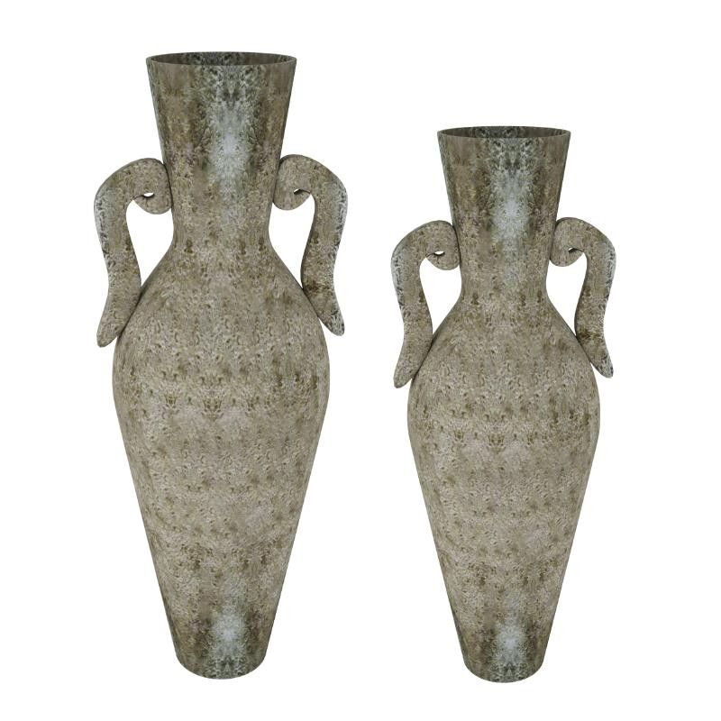 ГОЛЯМA ИНТЕРИОРНА КЕРАМИЧНА ВАЗИ АМФОРА СИВО БЕЖОВО АНТИК 1 БР 38X31X100