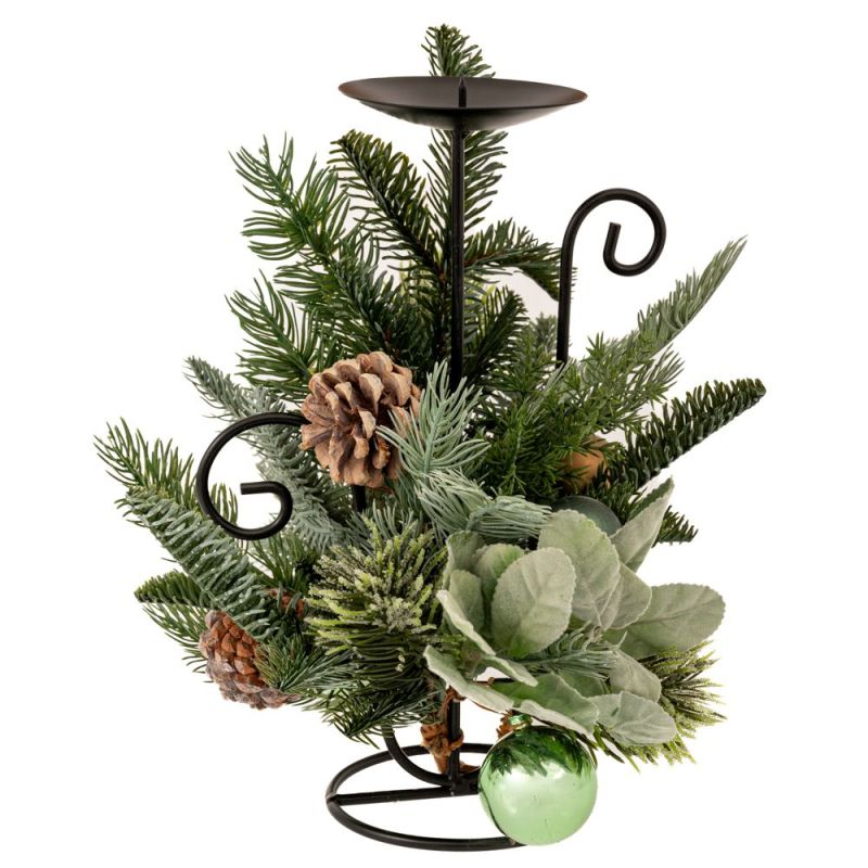 ЗЕЛЕН СВЕЩНИК С ШИШАРКИ И ТОПЧЕТА 33 СМ