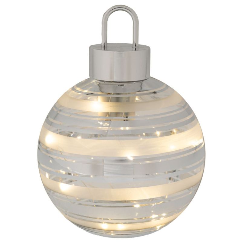 БЯЛА СТЪКЛЕНА ТОПКА СЪС СРЕБЪРНА РАЙОНА И LED СВЕТЛИНА Φ15 СМ, С БАТЕРИЯ