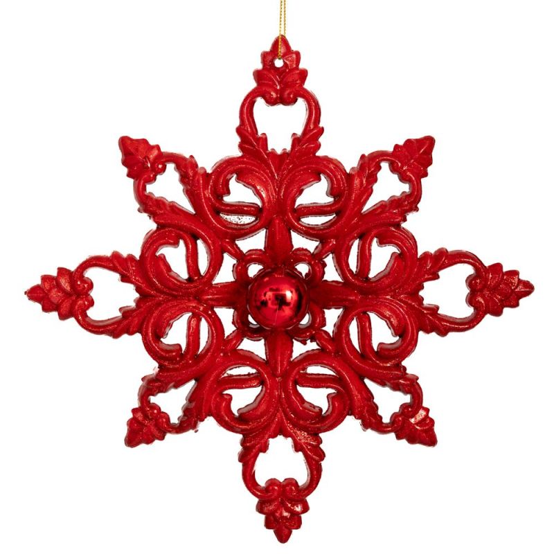 ВИСЯЩА УКРАСА С ЧЕРВЕНА СНЕЖИНКА 25 СМ