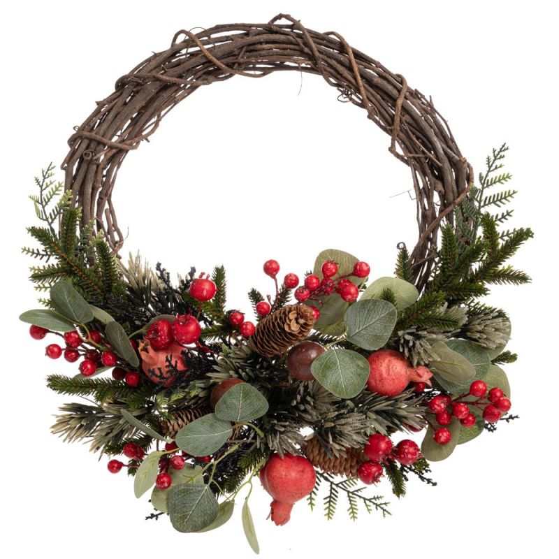 ЗЕЛЕН ВЕНЕЦ С НАР, ГЪБИ И БОРОВИ ШИШАРКИ 50 СМ