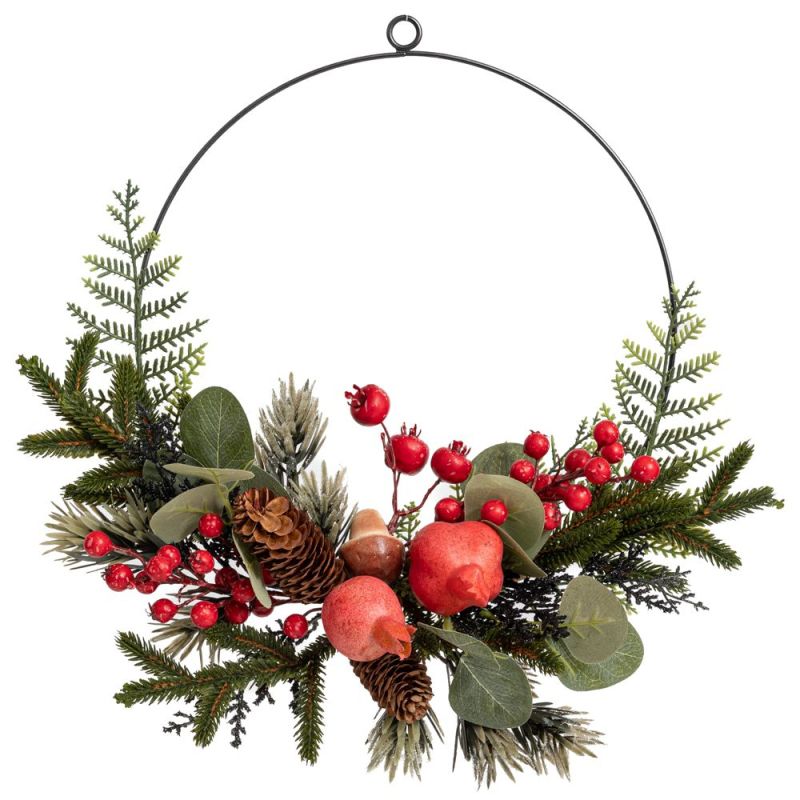ЗЕЛЕН ВЕНЕЦ С НАР, ГЪБИ, ГОРСКИ ПЛОДОВЕ И ШИШАРКИ 30 СМ