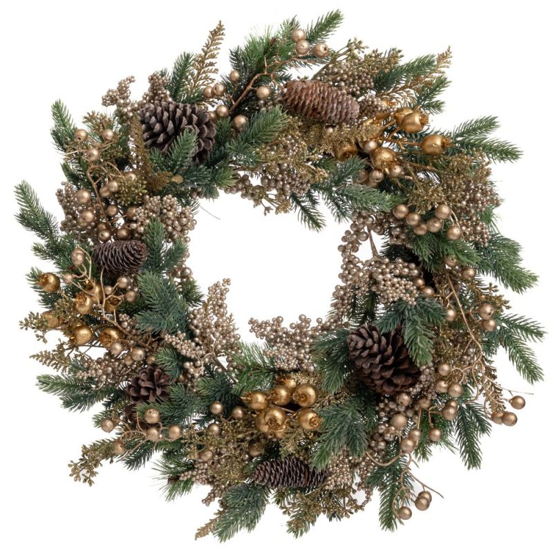 ЗЕЛЕН ВЕНЕЦ С ПЛОДОВЕ И БОРОВИ ШИШАРКИ 55 СМ