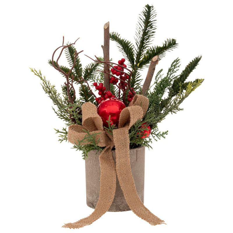 ИЗКУСТВЕНА ЗЕЛЕНА КОЛЕДНО ДЪРВО С ИМЕЛ В ЦИМЕНТОВ САКСИЯ 10X38 СМ