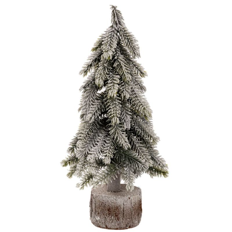 ИЗКУСТВЕНА КОЛЕДНА СНЕЖНОЗЕЛЕНА ЕЛХА НА ДЪРВЕНА ОСНОВА 27 СМ