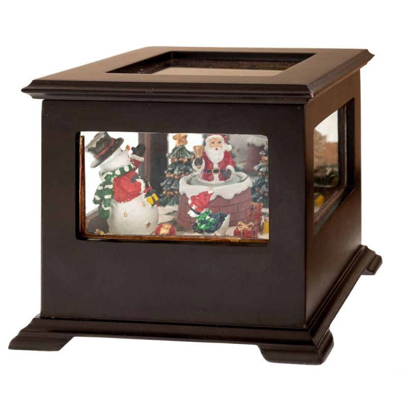 КАФЯВА ДЪРВЕНА МУЗИКАЛНА КУТИЯ С ВОДНА ТОПКА ВЪТРЕ 14X14X13 СМ