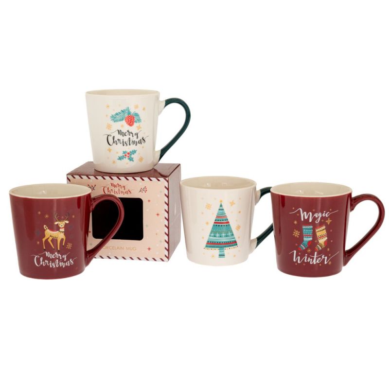 КЕРАМИЧНА ЧАША С КОЛЕДНИ ФИГУРКИ 4 ДИЗАЙНА В КУТИЯ 400 МЛ