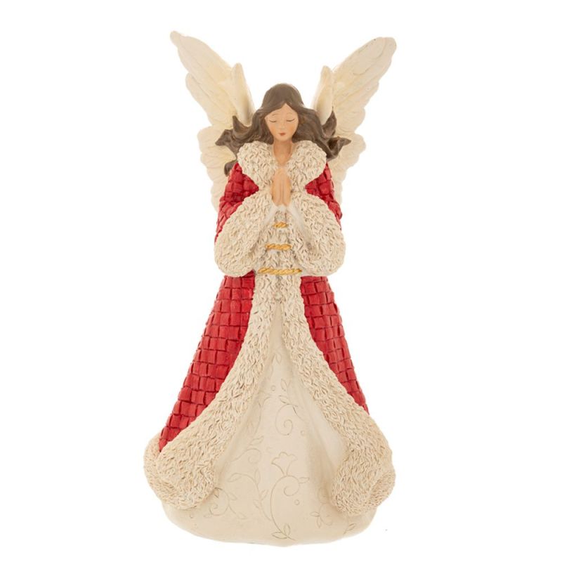 КОЛЕДЕН АНГЕЛ ОТ ПОЛИРЕЗИН, БЕЖОВО ЧЕРВЕН 14X10X27СМ