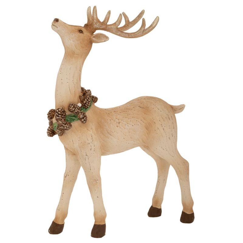 КОЛЕДЕН БЯЛ ПОЛИРЕЗИНОВ ИЗПРАВЕН ЕЛЕН СЪС ЗЛАТНИ РОГА И ПОГЛЕД КЪМ НЕБЕТО 21,5X8X31СМ