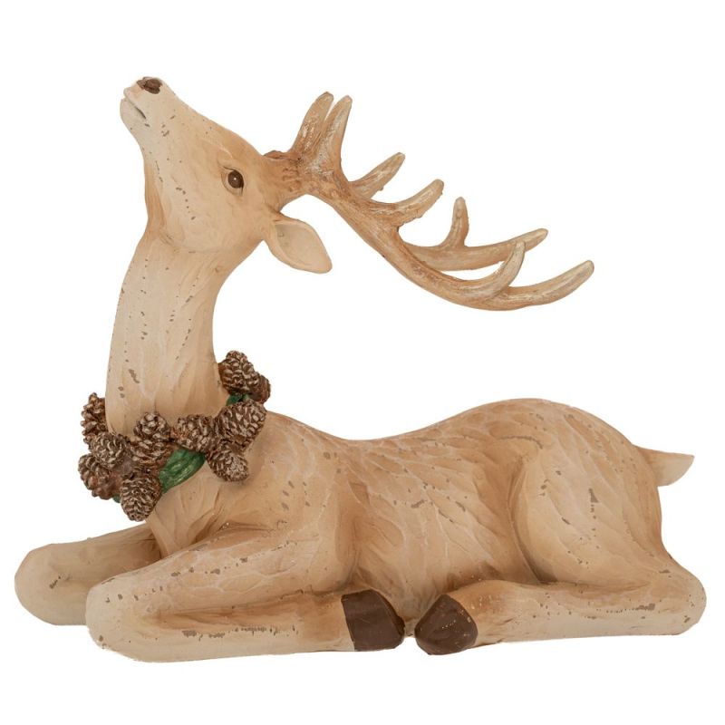 КОЛЕДЕН БЯЛ ПОЛИРЕЗИНОВ СЕДЯЩ ЕЛЕН СЪС ЗЛАТНИ РОГА 21,5X10X16,5 СМ