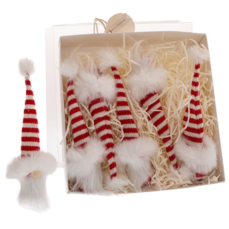 КОЛЕДЕН КОМПЛЕКТ 6 ЧЕРВЕНИ ПЛЕТЕНИ УКРАСИ С ГНОМИ 18 СМ В КУТИЯ 18X18X4 СМ