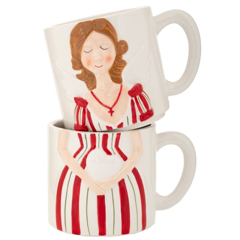 КОЛЕДЕН КОМПЛЕКТ ОТ 2 БЕЛИ КЕРАМИЧНИ ЧАШИ С ЧЕРВЕНА ФЕЯ 13X10X18СМ