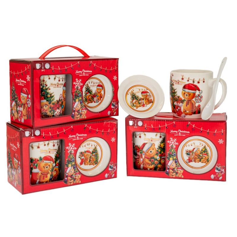 КОЛЕДЕН КОМПЛЕКТ ОТ 2 КЕРАМИЧНИ ЧАШИ С МЕЧЕ И ЧИНИЯ В ПОДАРЪЧНА КУТИЯ