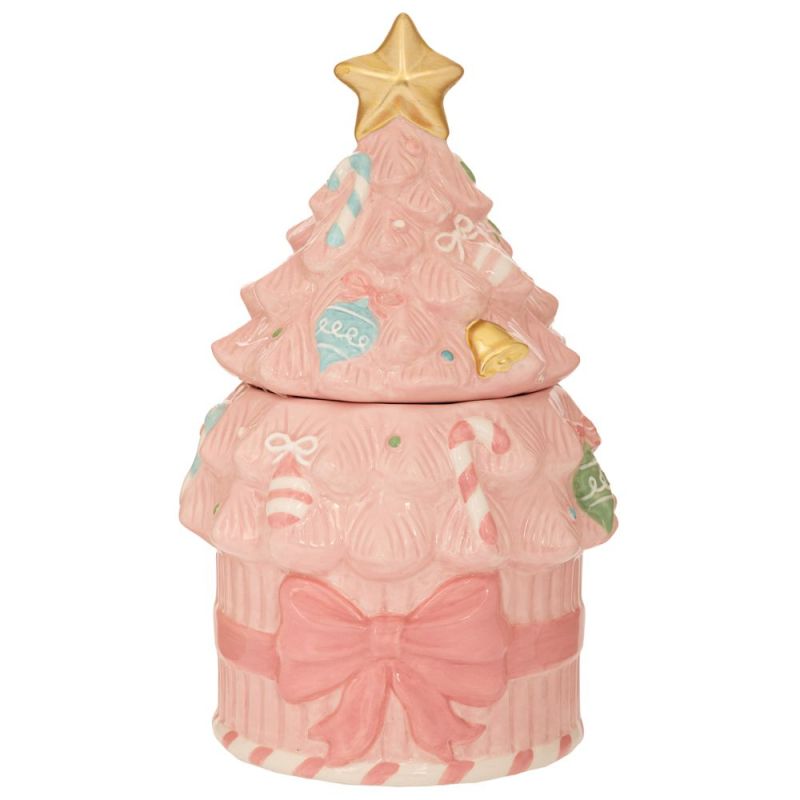 КОЛЕДЕН РОЗОВ КЕРАМИЧЕН БУРКАН ЗА БИСКВИТИ С КОЛЕДНА ЕЛХА 16,5X16X27СМ