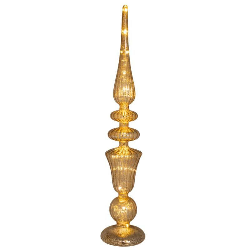 КОЛЕДЕН СТЪКЛЕН КОНУС В АНТИЧЕН ЗЛАТИСТ ЦВЯТ С LED СВЕТЛИНА D11,5X58CM, С БАТЕРИЯ