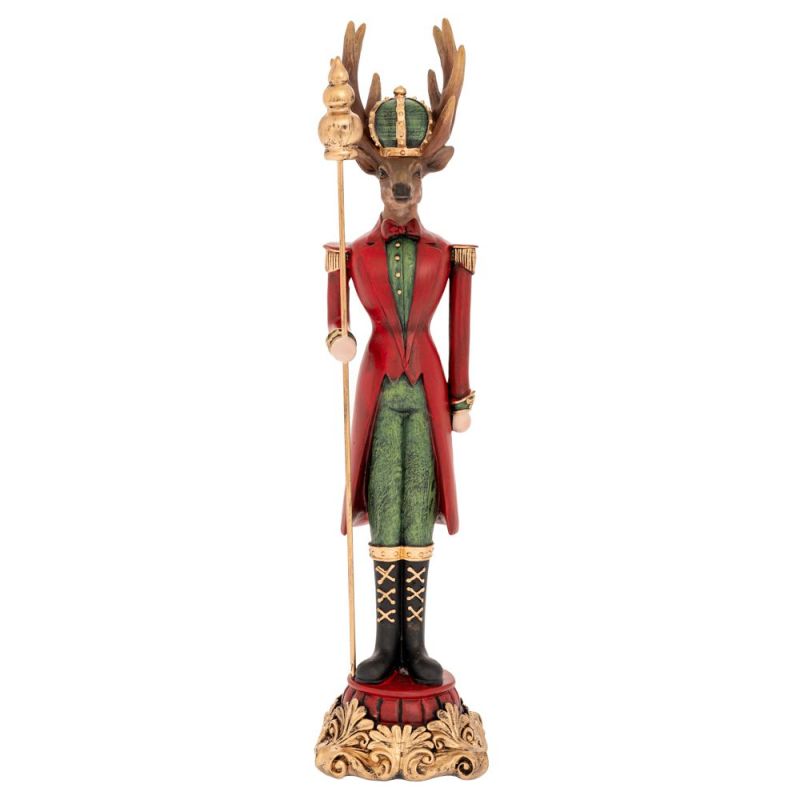 КОЛЕДЕН ЧЕРВЕНО-ЗЕЛЕН ЕЛЕН ОТ ПОЛИРЕЗИН, ДЪРЖЕЩИ СКИПТЪР 9X9X37,5 СМ
