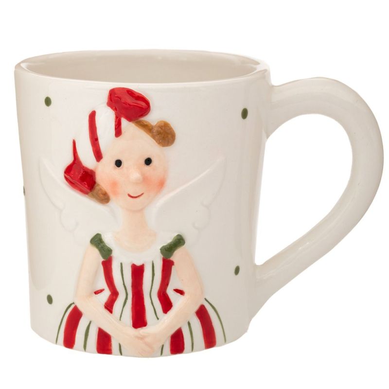 КОЛЕДНА БЯЛА КЕРАМИЧНА ЧАША С ЧЕРВЕНА ФЕЯ 13X9X9 СМ
