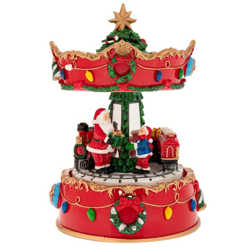КОЛЕДНА ВЪРТЕЛЕЖКА ОТ ПОЛИРЕЗИН В ЧЕРВЕН ЦВЯТ С МУЗИКА И ДВИЖЕНИЕ 11,5X11,5X16СМ