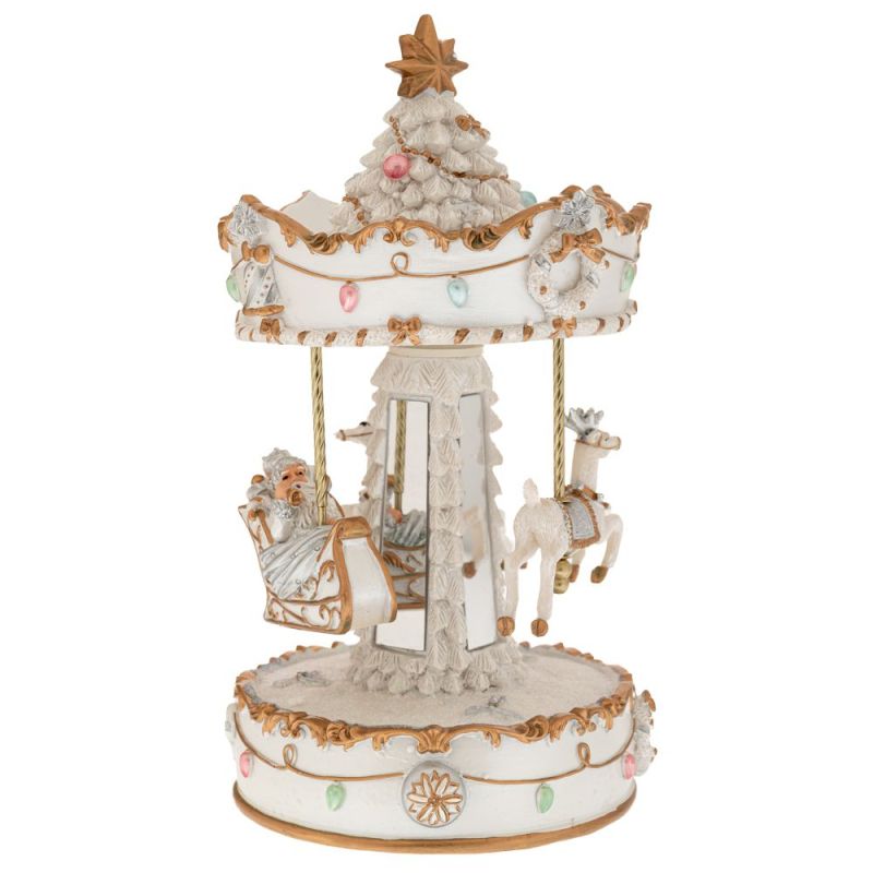 КОЛЕДНА ВЪРТЕЛЕЖКА ОТ ПОЛИРЕЗИН С БЯЛО ЗЛАТО С КОНЕ, С МУЗИКА И ДВИЖЕНИЕ 14X14X25 СМ