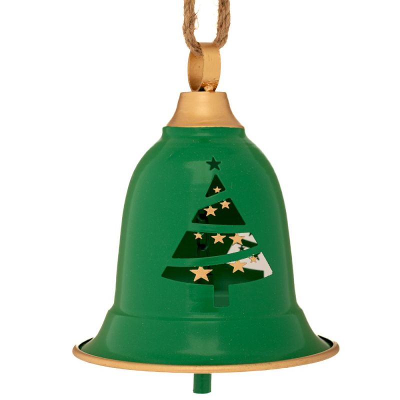 КОЛЕДНА ЗЕЛЕНА МЕТАЛНА ВИСЯЩА КАМБАНКА 15X15X17СМ