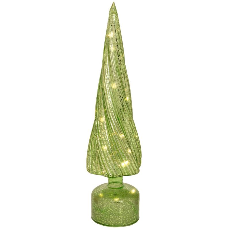 КОЛЕДНА ЗЕЛЕНА СТЪКЛЕНА ЕЛХА С LED СВЕТЛИНА 10X10X39,5 СМ, С БАТЕРИЯ
