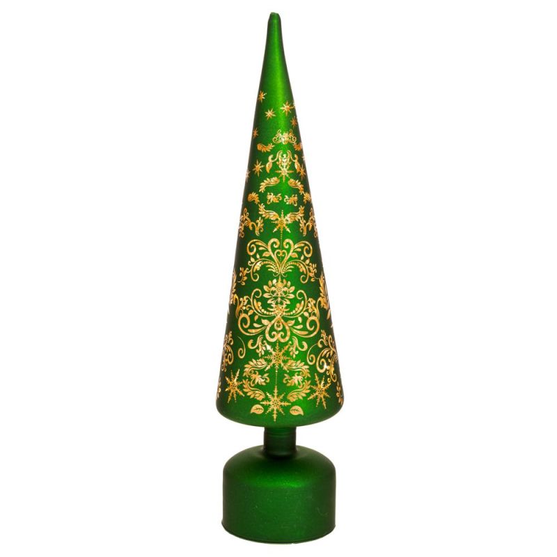 КОЛЕДНА ЗЕЛЕНА СТЪКЛЕНА ЕЛХА С LED СВЕТЛИНА 9,5X9,5X40СМ, С БАТЕРИЯ