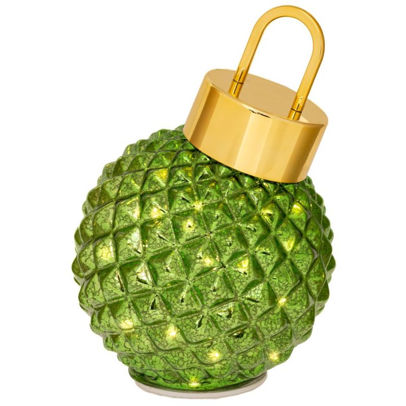 КОЛЕДНА ЗЕЛЕНА СТЪКЛЕНА ТОПКА С LED СВЕТЛИНА D18 СМ, С БАТЕРИЯ