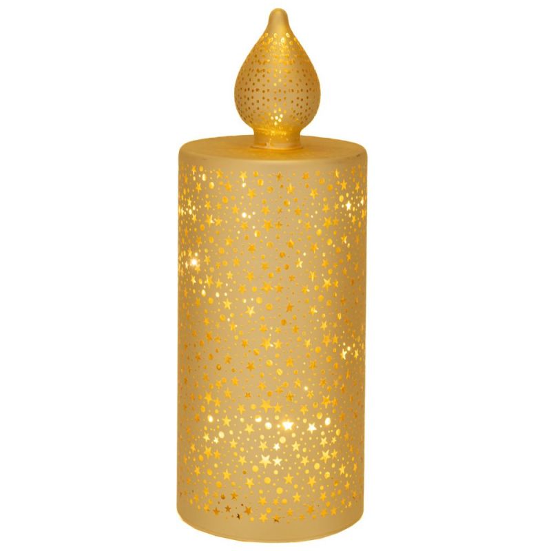 КОЛЕДНА ЗЛАТИСТА СТЪКЛЕНА СВЕЩ СЪС ЗВЕЗДИ 7,5X7,5X21СМ, ЗАРАДИ ОТ БАТЕРИИ