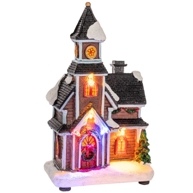 КОЛЕДНА КЪЩА ОТ ПОЛИРЕЗИН СЪС СВЕТЛИНИ 10,5X7Х14СМ, ЗАРАДИ ОТ БАТЕРИИ