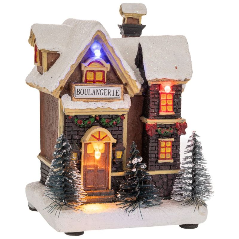 КОЛЕДНА КЪЩА ОТ ПОЛИРЕЗИН СЪС СВЕТЛИНИ 9X7Х11,5 СМ, С БАТЕРИИ