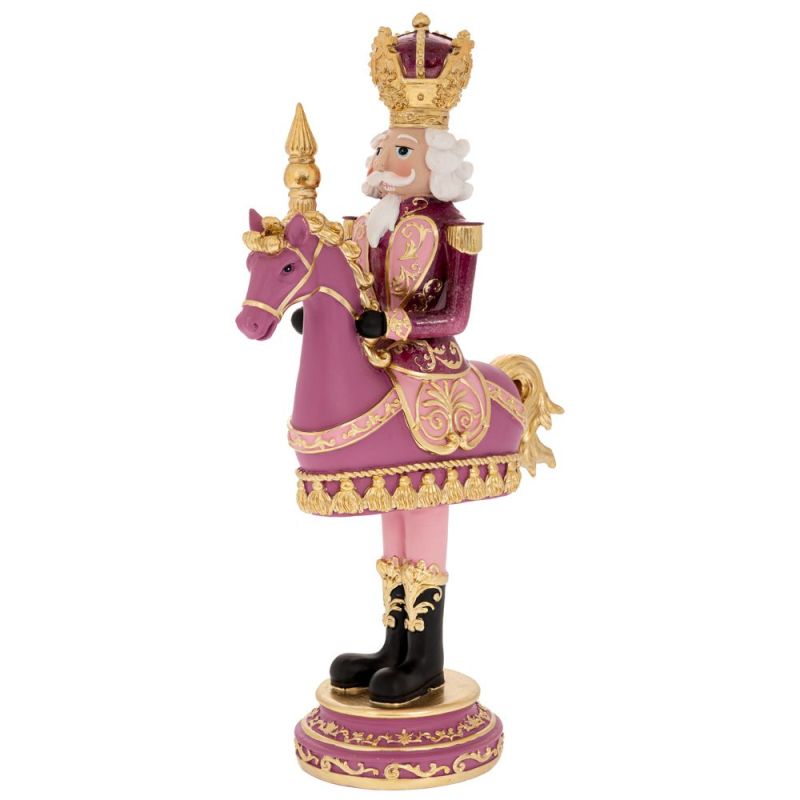 КОЛЕДНА РОЗОВА ЛЕШНИКОТРОШАЧКА ОТ ПОЛИРЕЗИН, ЯЗДЕЩА КОН 19,5X9,5X33СМ