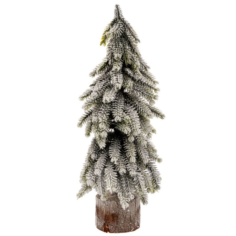 КОЛЕДНА СНЕЖНОЗЕЛЕНА ЕЛХА НА ДЪРВЕНА ОСНОВА 35 СМ