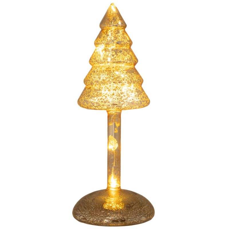 КОЛЕДНА СТЪКЛЕНА ЕЛХА В АНТИЧНО ЗЛАТИСТ ЦВЯТ С LED СВЕТЛИНА D9X23,5 СМ