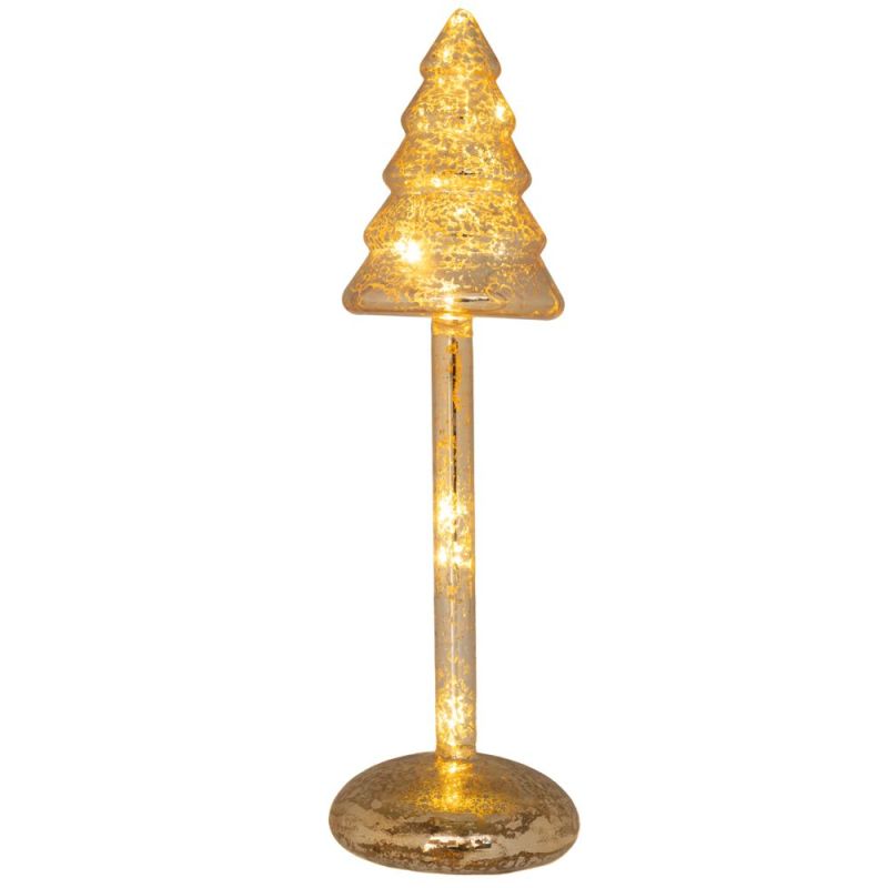 КОЛЕДНА СТЪКЛЕНА ЕЛХА В АНТИЧНО ЗЛАТИСТ ЦВЯТ С LED СВЕТЛИНА, РАЗМЕР 9X30 СМ