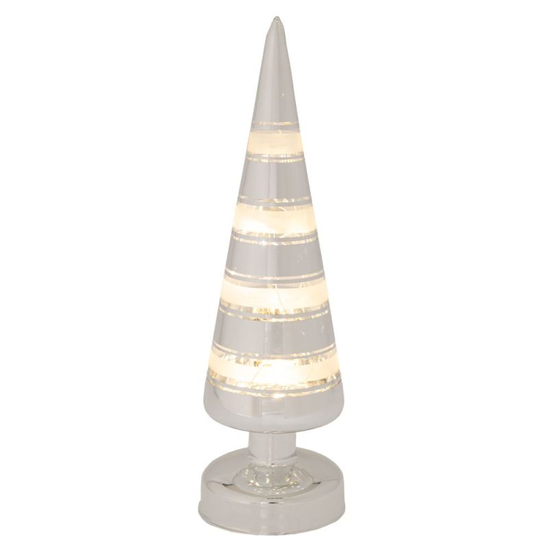 КОЛЕДНА СТЪКЛЕНА ЕЛХА В СРЕБЪРНО-БЯЛО С LED СВЕТЛИНА 9Х9Х30 СМ, ЗАРАБОТЕНА С БАТЕРИИ