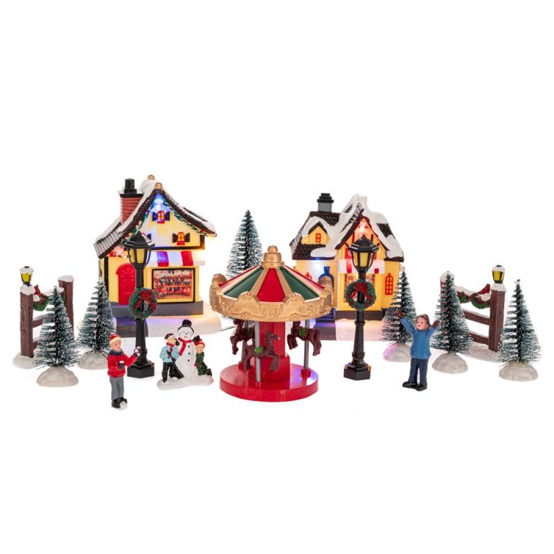 КОЛЕДНА СЦЕНА СЪС СЕЛО ОТ ПОЛИРЕЗИН С LED ДИСКОВЕ, С БАТЕРИЯ