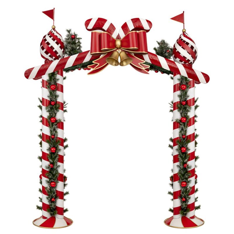 КОЛЕДНА ЧЕРВЕНА АРКА С БЕЛИ РАИРАНИ КАМБАНКИ 242X53X270СМ