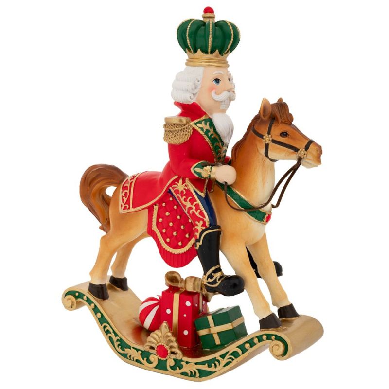 КОЛЕДНА ЧЕРВЕНА ПОЛИРЕЗИНОВА ЛЕШНИКОТРОШАЧКА С ПОДАРЪЦИ НА ВИНТИДЖ ЛЮЛЕЕЩ СЕ КОН 24X8X32 СМ