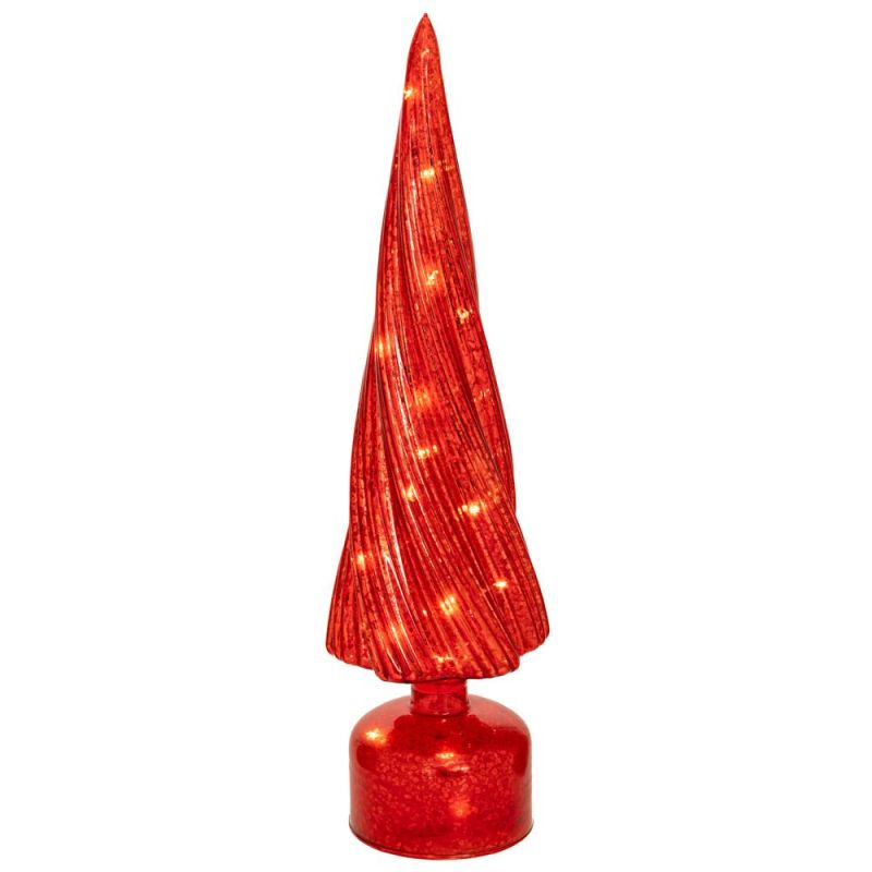 КОЛЕДНА ЧЕРВЕНА СТЪКЛЕНА ЕЛХА С LED СВЕТЛИНА 10X10X39,5 СМ, С БАТЕРИЯ