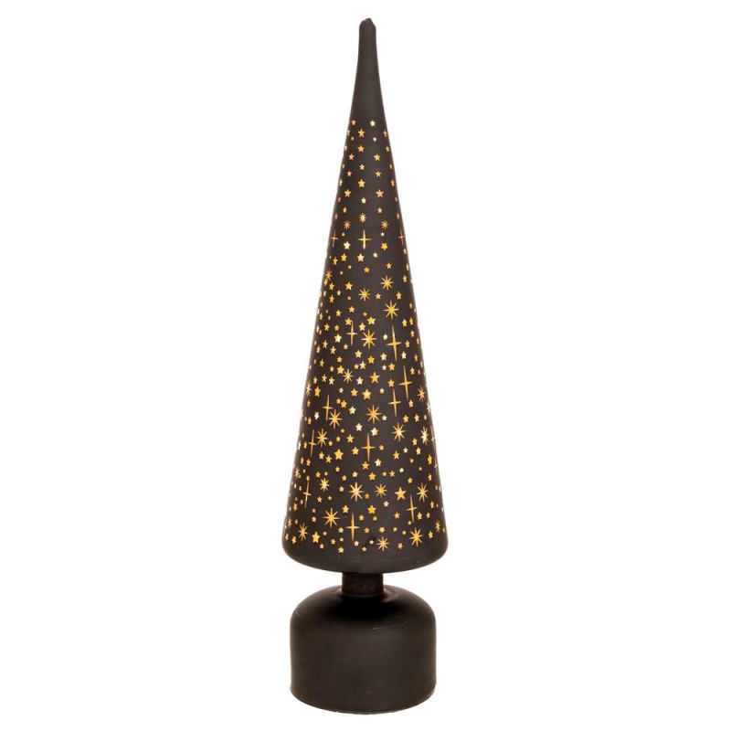 КОЛЕДНА ЧЕРНА СТЪКЛЕНА ЕЛХА С LED СВЕТЛИНА 9,5X9,5X40 СМ, С БАТЕРИЯ