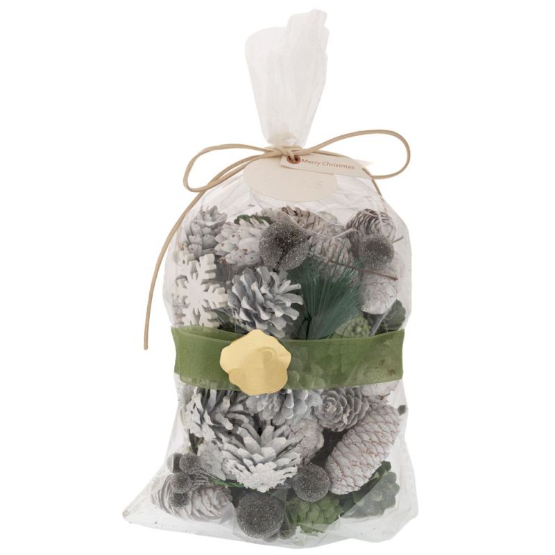 КОЛЕДНИ ЗЕЛЕНО-БЕЛИ ДЕКОРАТИВНИ ШИШАРКИ В ТОРБИЧКА 53 БРОЯ