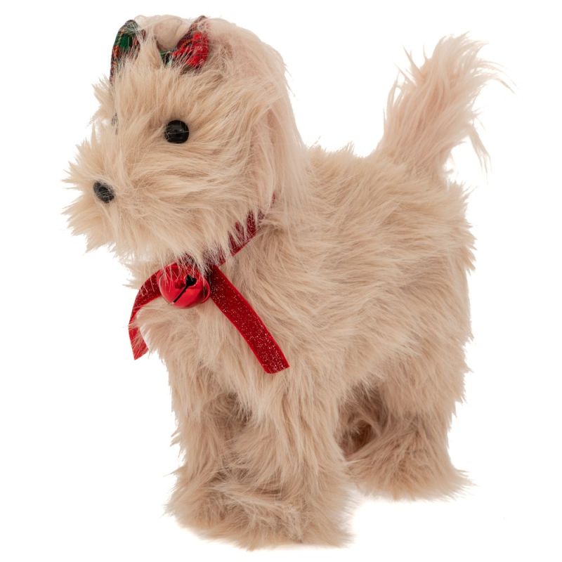 КОЛЕДНО БЕЖОВО КУЧЕ С ЧЕРВЕН НАШИЙНИК И КАРИРАНА ПАНДЕЛКА НА КОСАТА 31X11X32 СМ