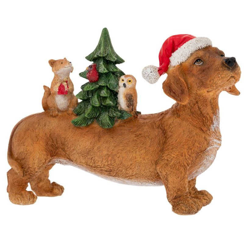 КОЛЕДНО КАФЯВО КУЧЕ ОТ ПОЛИРЕЗИН, НОСЕЩО ЧЕРВЕНА ЗИМНА ШАПКА И НОСЕЩО ЖИВОТНИ 21X7,5X16СМ