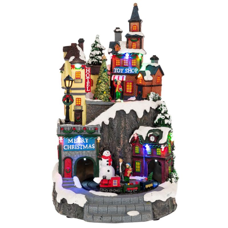 КОЛЕДНО СВЕТЕНО СЕЛО С МАГАЗИН ЗА ИГРАЧКИ, ХОТЕЛ И ВЛАКЧЕ, ВКЛЮЧВА АДАПТЕР 22X22X35,5 СМ