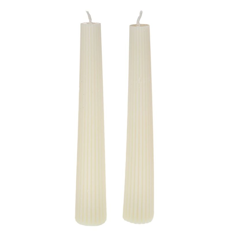 КОМПЛЕКТ 2 КРЕМАВИ ОРБЕРЕНИ СВЕЩИ СТЪЛБ 3.5X22.5 СМ